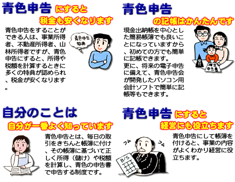 不動産所得、事業所得又は山林所得を生ずべき業務を行う人は、納税地の所轄税務署長の承認を受けて、確定申告書を青色の申告書によって提出することができます。この申告書を青色申告書、この申告のできる人を青色申告者と呼んでいます。
