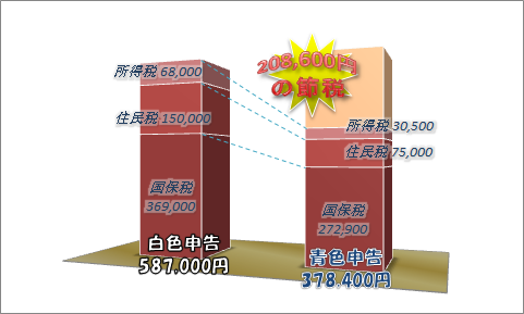 青色申告をすると税法上多くの特典が受けられ、白色申告に比べ税金が安くなります。特典の主なものは次のとおりです。